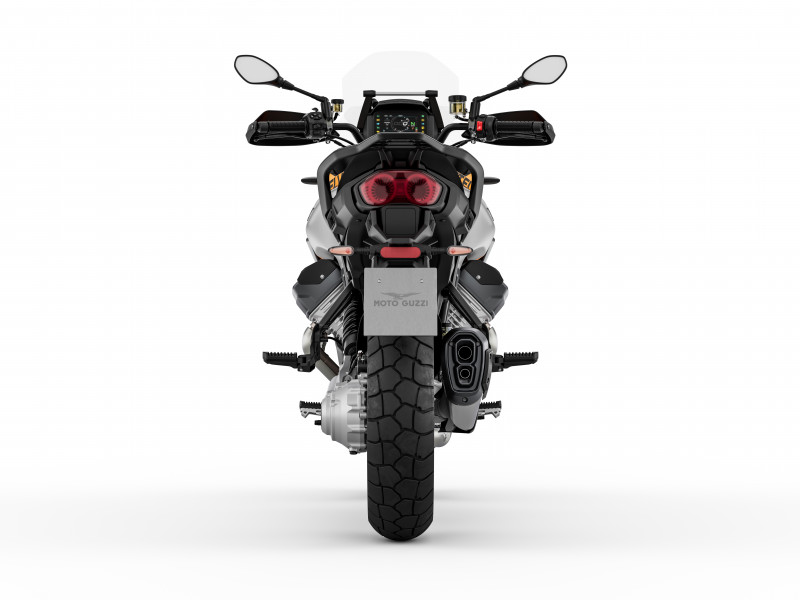 Chaque élément de la Stelvio reflète l'héritage Moto Guzzi, de son moteur V-Twin "Compact Block" à son gras oscillant unilatéral unique, en passant par ses feux de jour en forme d'aigle. Chaque détail est pensé pour donner vie à cette moto, solide, compact et puissante.