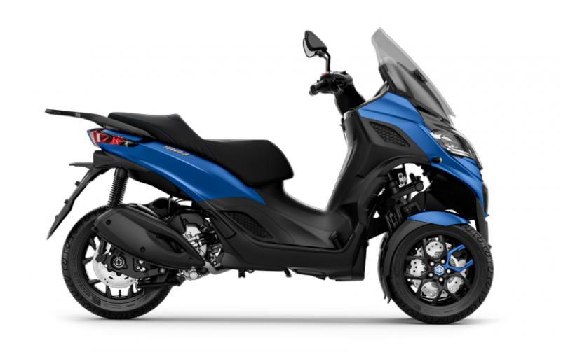 Le Piaggio MP3 310 Sport est disponible en trois variantes de couleurs : Noir Meteora avec une teinte métallisée mate, Gris Mercurio (brillant) et Bleu Zaffiro (mate). Cette version est complétée par des finitions sportives bleu, qui accentuent le caractère sportif du scooter : les surpiqûres contrastées de la selle ainsi que les décalcomanies sur les jantes noires mettent encore plus en valeur les lignes épurées du véhicule.